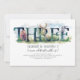 Um cenário de madeira de cor aquática de 3 anos, convites de festas de aniversários.