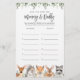 Os animais florestais temem o chá de fraldas da idade do cartão de caça mostram uma ilustração de animais da floresta a cores-d'água e verde-d'água eucalipto garland e uma elegante letra de estilo manuscrito.