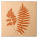 Azulejo numa silhueta de feno de madeira adaptada a partir de ilustrações botânicas vintage, fundidas digitalmente e coloridas, em Pastel e em laranja mandarina profunda