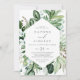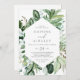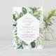 Este convite casual de casamento em áreas verdes é perfeito para um verão ou casamento outono. A design do boho moderno apresenta folhas de esmeralda, sábio e aquarela verde-oliva e botânicos com esférulas de flores brancas elegantes.