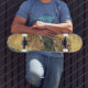 realistic watercolor art work of woodland toad was use to create this unique skateboard deck By SandyCloss. grean yellow cream brown