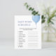 Adicione risos e brincadeiras ao seu Chá de fraldas com o nosso 'Word Scramble' | Blue Balloon Chá de fraldas Game". Os hóspedes vão divertir-se muito ao completar a lista de palavras neste cartão, todas relacionadas a bebês, que podem desembaraçá-los primeiro! Pegue a sua hoje e crie memórias inesquecíveis! Solução: 1. fórmula 2.pacifer 3.baby monitor 4.rocking station 5.swaddle 6.fralda raffle 7.borracha pato 8.stroller 9.playpen 10.eosines