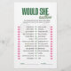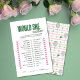 Add fun and laughter to the celebration with this Would She Rather bridal shower game card, designed as a full-page paper game sheet. Guests will guess which option the bride-to-be would choose by placing a tick next to their answers. Featuring a charming tennis-inspired design, this game is perfect for tennis lovers, sporty brides, country club bridal showers, engagement parties, and wedding showers. The clean, easy-to-read layout makes it simple to play, while the coordinating tennis pattern on the back adds a polished, professional finish. Ideal for modern, elegant, and themed bridal celebrations.