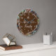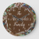 Este belo relógio marrom apresenta uma coroa circular de folhagem e ervas ricamente coloridas, acrescentando um toque da natureza a qualquer sala. No centro, um belo roteiro diz "A Família (Sobrenome)", criando um toque personalizado para sua casa. Ao redor do relógio há números pequenos, garantindo uma fácil contagem de tempo e mantendo uma aparência de na moda. Você pode personalizar este relógio com seu nome de família, fazer-o como um presente perfeito para recém-casados ou como um complemento ponderado para sua própria decoração doméstica.