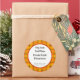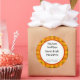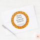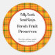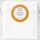 Um padrão de xadrez de cheques e listras amarelos, laranja, marrom e verdes em autocolantes ou adesivos personalizados com script e letras de bloqueio para seu nome ou pequena empresa, título da receita e espaço para ingredientes, peso, endereço ou mais informações.