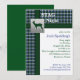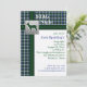 Este xadrez rústico azul, verde e branco, com convite de veado prateado é totalmente personalizável.