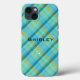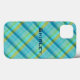 Maleta azul de xadrez, mala dura de Apple iPhone 13. Imagens Copyright © Shirley Taylor. Todos os Direitos Reservados.
