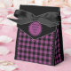 Caixa de favor de tenda xadrez de búfalo preta e roxa. O texto é personalizável. Se você usar o botão/ferramenta 'Editar design', também poderá adicionar suas próprias imagens/fotos. Outras cores, formas e tamanhos de caixa disponíveis.