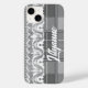 Uma impressão xadrez feminina em preto, branco de cinza. Amarrado com delicado rendas brancas e pérolas.