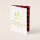 Mande aos seus amigos e família um cartão de na moda de Natal nesta época de Natal. Este belo e rústico cartão de Natal contém as palavras "Feliz Natal" em uma letra de script de tendências com árvores de Natal em folha de ouro real, um espaço reservado para sua foto personalizada e espaço reservado para sua saudação personalizada. A dentro também apresenta um padrão de búfalos vermelho e preto rústico.