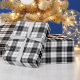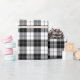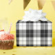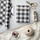 Um papel de embalagem projetado com um padrão de xadrez preto e branco. Personalize o fundo branco entre outras opções.
