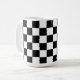 Minha arte digital original nesta caneca apresenta um padrão de estilo antigo de espaços de prancheta processados e criados para um estilo artístico. Os quadrados preto-e-branco retro-vibração para um toque clássico.