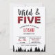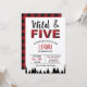 Selvagem e Cinco! Este convite para xadrez impresso frente e verso é perfeito para uma quinta festa de aniversário. Inclui padrão de verificação de búfalos vermelho e preto e silhueta de árvore. Personalize facilmente o texto para o seu pequeno para um convite verdadeiramente único. Ideal para uma festa no outono ou no inverno, um lenhador, uma aventura ou um tema ao ar livre ou uma cabana de vestimenta flanela.