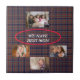 Este presente encantador é ideal para mostrar amor à sua mãe. Mostra uma coleção de fotos de família tesouradas. No centro superior, acentua-se uma imagem familiar significativa. Cercada por uma borda oval vermelha, a frase "Nós temos a melhor mãe" é inscrita no meio em um roteiro desenhado à mão chamado Freestyle. Abaixo, mais três fotos estão posicionadas de forma inteligente para que os cantos inferiores das duas fotos externas toquem nos cantos superiores da foto inferior central. Este layout é apresentado contra um fundo vivo de tartan vermelho, azul e xadrez. Para um toque pessoal, basta trocar as imagens de espaço reservado por suas. As fotos de exemplo são fornecidas por Fotografia © Storytree Studios, Stanford, CA.