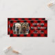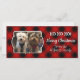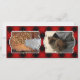 Modelo de fotos de Natal divertidas com um padrão de xadrez vermelho e preto. Copyright © Angi Laframboise. Dons personalizados de fotos de feriado.