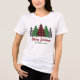 Esta camiseta tricotada de mulheres de férias rústicas personalizada apresenta xadrez vermelha e árvores de Natal verdes sobre sua mensagem Feliz Natal. Um bonito olhar personalizado e tradicional que está de novo no estilo, esta árvore festiva é perfeita para uma reunião familiar. Design clássico e nostálgico.