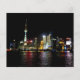 Xangai à noite ou à noite. A foto foi tirada no "Bund" numa noite quente. Mostra a Oriental Pearl Tower e os arranha-céus na vizinhança. Xangai é a maior cidade de Chinas e uma das maiores do mundo. A cidade floresceu nas últimas duas décadas devido ao desejo da China de vê-la tornar-se um centro internacional de finanças e cultura. A cidade tem uma mistura fantástica de história e modernidade. A modernidade da cidade é mais visível quando a noite cai no rio Huangpu, onde os visitantes podem ver uma exibição de luz espantosa e desfrutar de vistas de excelente dos arranha-céus da cidade, como se vê na foto.