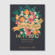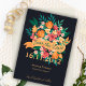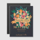 Chic Floral Wedding Save the Date Card - Yellow & Orange Blooms on Marinho . Celebre seu amor em estilo com este cartão floral chic do casamento. Apresentando uma vibrante buquê de flores amarelas, laranja, corais e rosa sobre fundo marinho profundo, esta design combina elegância moderna com encanto romântico. Uma faixa de fita na moda destaca sua data, enquanto a tipografia refinada mostra seus nomes. Perfeito para primavera, verão, ou casamentos outono, esta salva floral dá o tom para uma celebração alegre. Personalize facilmente com seus detalhes de casamento por um único guardião que seus hóspedes irão tesourar.