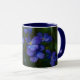 Meu trabalho artístico original é apresentado nesta bonito caneca floral, que consiste na minha fotografia de flores azuis-escuras, em um jardim de sombra. A imagem foi processada com um efeito de aquarela para uma aparência ilustrada e branca. O dentro da xícara e da pega são um tom azul para complementar o trabalho de arte. Estas são canecas de 11 onças, do tamanho perfeito para o café ou chá da sua casa - ou até chocolate quente! Ele faria um presente de excelente, e você pode colocar pacotes de café, bolsas de chá ou dentro de chocolate quente. Uma outra ideia de presente é colocar uma pequena planta nela para torná-la mais especial para o seu amado. Também seria um belo presente de Dia de as mães.