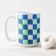 Minha arte digital original nesta caneca apresenta um padrão de abstrato de estilo antigo de quadrados e espaços em tons azuis e lacrimogêneos para um toque retrô e clássico. Estas são canecas de 15 onças, do tamanho perfeito para o café ou chá da sua casa - ou até chocolate quente! Ele faria um presente de excelente e você poderia colocar pacotes de café, bolsas de chá ou dentro de chocolate quente. Uma outra ideia de presente é colocar uma pequena planta nela para torná-la mais especial para o seu amado.