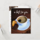 Uma ilustração de "ter uma pausa" com uma xícara branca de café - o café com forma cardíaca feito de espuma, 2 pedaços de chocolate zwieback rusk e alguns grãos de café em fundo de madeira.