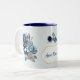Café ou xícara de chá azul bonito com seu Nome, iniciais ou texto personalizado. Belo presente de orçamento. Há um relógio de rosa azul correspondente.