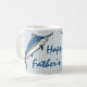 Poucos peixes são incrivelmente bonitos que o espadim azul — e nem muitos peixes são maiores. O espadim azul é o maior dos espadins do Atlântico e, sério, um dos maiores peixes do mundo. Como em algumas espécies, a fêmea é muitas vezes um pouco maior que o macho. As mulheres podem crescer até 14 pés de comprimento e podem pesar mais de 1.900 libras, embora a média corra mais em torno de 11 pés de comprimento e 300 libras. Um azul profundo sobre o topo e o branco-prateado, com uma barbatana dorsal pronunciada e uma mandíbula longa, letal, em forma de lança (que alguns chamam de lei), os espadins azuis são um dos peixes mais facilmente identificáveis e reconhecíveis do mundo. Marlins é renomado por sua incrível resistência em uma luta quando estão viciados, o que os torna um favorito troféu de grandes pescadores de caça. Embora possa ser dito de praticamente qualquer peixe super grande, não consigo imaginar que haja muito mais emocionante para o ávido anjo do que pegar um desses gigantes e vê-lo quebrar a água na luta. Este design homenageia mais este peixe majestoso do que os pescadores que o procuram. Para esta maravilhosa caneca de café, dois espadins enquadram um texto, "Dia de os pais feliz". Obviamente, uma excelente escolha para o Dia de os pais, você é bem-vindo a modificar o texto para se adequar melhor à sua celebração para o seu angler favorito.