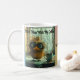 Essa xícara de café branca apresenta uma imagem encantadora de um pássaro pequeno e fofo com olhos grandes e expressivos e penas sujas e peludas em pé sobre uma mesa. O pássaro está mirando diretamente na câmera com uma expressão levemente desnorteada, adicionando um toque humorístico ao design. Ao lado do pássaro está uma xícara branca de café com ascensão a vapor dela, indicando que o café está quente. O fundo da imagem inclui uma janela com luz suave e difusa a passar, criando uma atmosfera quente e aconchegante. Esta design deliciosa e peculiar é perfeita para quem aprecia uma boa risada com o café matinal. Café personalizável, não se meta com meu café, café Whimsical wackadoodle, xícara de café, design de pássaro charmoso, pássaro fluffy, olhos expressivos, xícara de café humorada, caneca de café esquisita, café da manhã, atmosfera acolhedora, com vapor, imagem de pássaro giro, xícara de café deliciosa, design de café divertido.