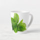 Uma xícara de chá com uma foto de uma árvore de chá para dar um bom humor