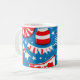 Esta é uma caneca comemorativa do Dia do Trabalho. Coloquei fotos comemorando o Dia do Trabalho num fundo azul. Celebrar um feriado americano excelente