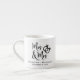 Dê um brinde de casamento e seus convidados de casamento uma lembrança divertida mantendo seu dia especial com esta caneca de café expresso personalizada com "Sra. & Sra." escrita em um grande roteiro e uma ilustração de dois anéis de casamento juntos. Adicione seus nomes e data de casamento abaixo.
