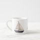 A sailboat adorns both sides of your espresso mug, your name or the name of your boat in elegant and brown in the middle.