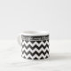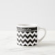 Uma na moda pequena caneca de café Espresso para vocês personalizarem, com um padrão zigue de gemidos negros e brancos. Se você preferir a caneca sem nenhum texto, poderá personalizá-la facilmente, excluindo o texto e movendo o padrão de gíria para cima até que a banda de texto simples desapareça.