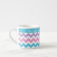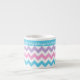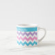 Uma na moda pequena caneca de café Espresso para vocês personalizarem, com um padrão de azul Turquesa, Rosa Candi, Púrpura Luz e Cevrons Brancos. Se você prefere a caneca sem nenhum texto, você pode personalizá-la facilmente, excluindo o texto e movendo o padrão de cóvron para cima até que a banda de Turquesa simples desapareça.