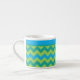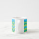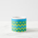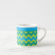 Uma "Chic Espresso Coffee Mug" com um padrão de ziguezague em Neon Green, Emerald Green e Turquoise Chevrons. Parte da coleção 'Luas Azuis' de Posh & Painterly.