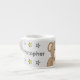 "Espresso tamanho" para crianças. Nesta xícara de bebendo há um ursinho fofo, com estrelas. Adicione um nome e inicial. Cinza e amarelo.