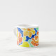Uma Caneca Espresso colorida e na moda, com design de "Nasturtius", em cor laranja, vermelha, amarela e verde sobre fundo azul, de um design de cor d'água pintado à mão por Judy Adamson. Um pote de chá, jarro e outras canecas também estão disponíveis com este design.