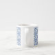 Esta charmosa caneca de estilo espresso é mostrada em branco com um design impressão azul damask. Personalize este item ou comprar como está.