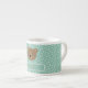 Uma ilustração adorável de urso toma o palco central sobre um fundo de bolinhas azul e branca aqua. É fácil personalizar com um nome.