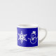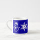 Homem de neve azul e branco de inverno e flocos de neve padrão Blue e White Espresso Mug presentes únicos de Natal personalizados para amantes de café.