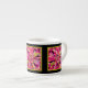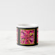 Um abstrato em tons de rosa, vermelho, laranja, roxo, chartreuse, verde-oliva, vinho e lavanda em fundo preto.