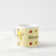 "Espresso tamanho" para crianças. Nesta taça de bebendo há uma girafa fofa, com estrelas. Adicione um nome e inicial. Vermelho e amarelo.