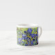 Um copo de espresso de arte fino com a pintura poste-impressionista, Irises (1889), de Vincent van Gogh (1853-1890). Iris azul violeta no jardim, que foi influenciada pela arte japonesa.