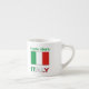 A xícara de Espresso apresenta a bandeira italiana vermelha, branca e verde ou Il Tricolore. Abaixo está a palavra ITÁLIA, também no tricolor italiano.Acima é um lugar para um nome adicionar uma aparência personalizada em letras verdes. Ou criar um presente personalizado adicionando o nome de outra pessoa.