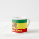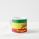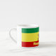 Esta caneca de 6 onças Expresso caracteriza um tema da reggae de Rasta com a bandeira de Etiópia das bandas 1897 horizontais consistir do verde, do amarelo e do vermelho com um leão escuro de Judah no centro, vestindo uma coroa e guardarando uma cruz.