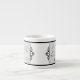 Xícara de espresso branco com a imagem, de ambos os lados, de um mapa preto e branco de Paris, França com bordas pretas e detalhes do trabalho de rolagem preto. Ver pote de doces, frasco, lança, placa de papel, bule e portas copos correspondentes. Veja toda a coleção de Canutos na COMIDA/BEV | Seção pratos.