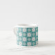Este Meio século das Flores Geométricas Modernas Espresso Mug é um meio século moderno da botânica! Este aqua baleado e design de tabuleiro de xadrez têm flores mod alternadas de aqua e cinzas de pomba em cada quadrado. As flores das cinzas das pombas têm cinzas quadradas mais escuras e as flores do aqua têm cinzas das pombas. Vai lembrá-lo de rabiscar no seu caderno no ensino médio, se você fosse um estudante do ensino médio com habilidades de rabiscar. Este padrão atômico, minimalista e gatinho irá adicionar um traço de estilo vintage ao seu dia. Você vai querer que seja seu melhor amigo para sempre.