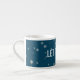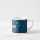 Caneca espresso azul moderna e personalizável com flocos de neve brancos.