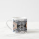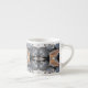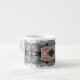 Esta trabalho de arte nesta Taça Espresso foi feita a partir de uma fotografia original do HomeWare de conchas marinhas. É uma foto de várias conchas em luz solar brilhante e sombra. As conchas do mar são conchas e outras variedades, na maioria brancas e cremosas, mas com cor clara de salmão no interior da casca, e uma com listras pretas e brancas. Há muitas formas intrincadas e curvadoras na design feitas a partir da foto da casca do mar. O tom geral do padrão é tons de cinza quente e branco, com um traço de salmão pálido rosa.