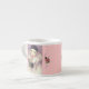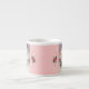 Xícara de espresso branco com uma imagem de vintage, em ambos os lados, do palhaço triste Pierrot com uma lágrima no olho e uma rosa-tronco longo na mão, rosa, a rosa, com embelezamentos de rosa e fita. Pierrot é um personagem que evoluiu na aparência com o romântico, decadente, simbolista e o início do teatro e arte modernista. Essa imagem é a imagem popular de Pierrot nos anos 1980. Ver pote de doces, frasco, arremessador, placa de melamina, placa de porcelana, placa de papel, vidro fotografado, bule de chá e portas copos. Veja toda a coleção de Mug Tubular 80s na COMIDA/BEV | Seção pratos.